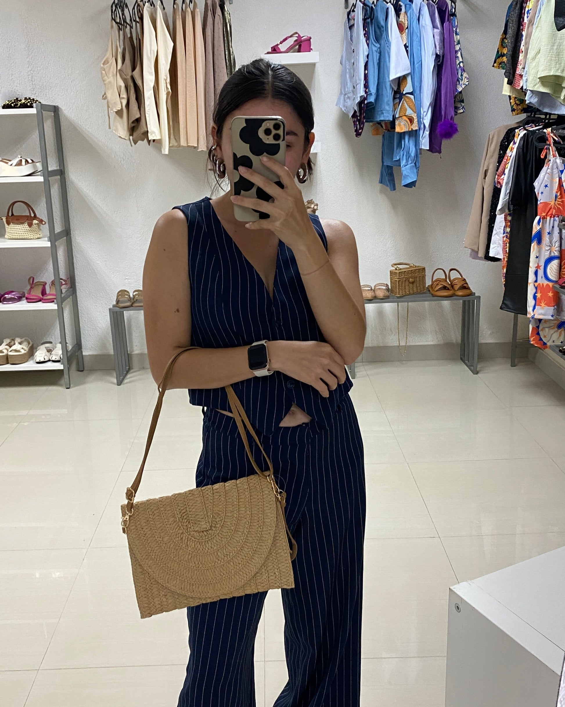 Sobre en yute con tira en semicuero sintetico